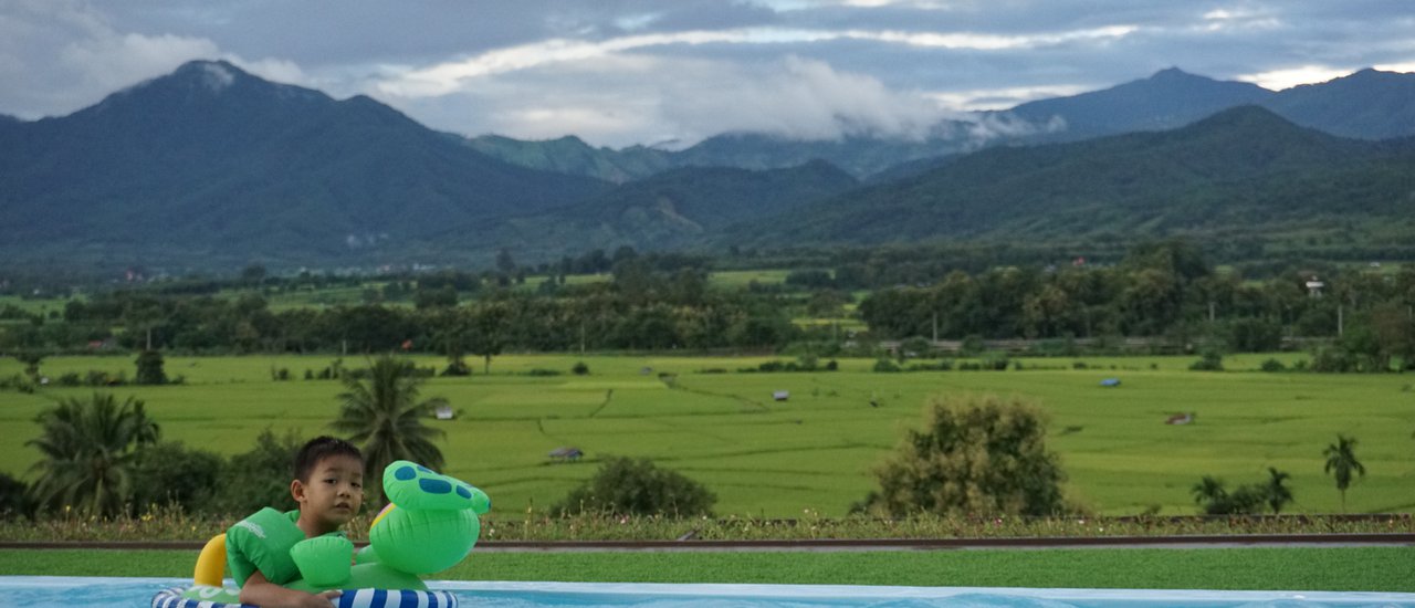 C view home ซีวิว โฮม : บ้านพักตากอากาศบนเนินเขา ปัว น่าน สระว่ายน้ำหน้าบ้านพร้อมวิวดอยภูเขาพาโนราม่า รอบสระเป็นลานสำหรับจัดกิจกรรม-ทานข้าว-ปิ้งย่าง ตัวบ้าน 4 ห้องนอน 6 ห้องน้ำ